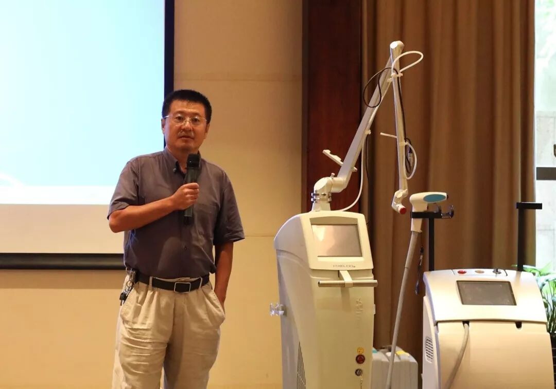 王连召教授以实操向学员讲授飞顿·超脉冲二氧化碳点阵激光和PLASMA治疗瘢痕的技术要领