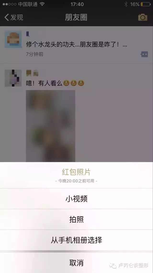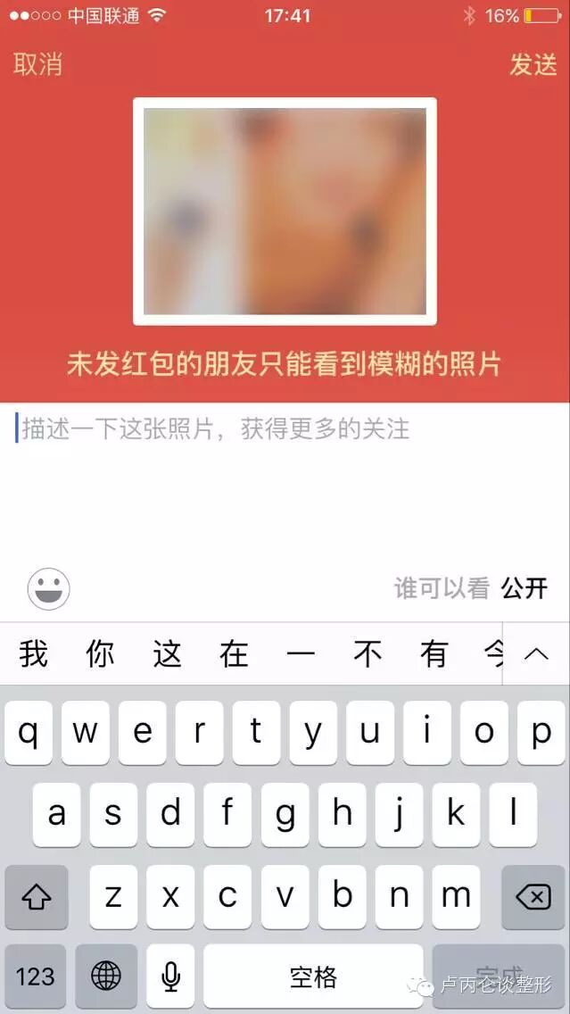 用户在朋友圈发出 “红包照片” 后,微信好友想要看见照片,必须发红包,金额随机,朋友圈顿时已经被模糊照片刷屏。
